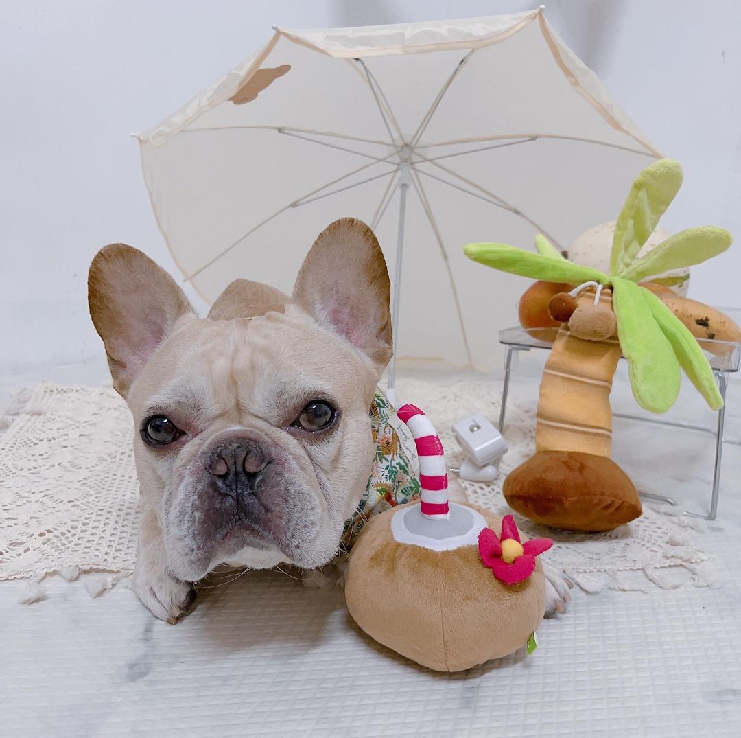 這款可愛的寵物玩偶是ROOP夏日風情系列中的一員,以椰子為設計靈感,完美呈現出夏日的氛圍和活力。這款椰子樹寵物玩偶的材質是高品質的毛絨,觸感柔軟舒適,他的內部裝入發聲器與響紙,讓狗狗玩得開心、躺的舒適,夏日必備陪伴神器。