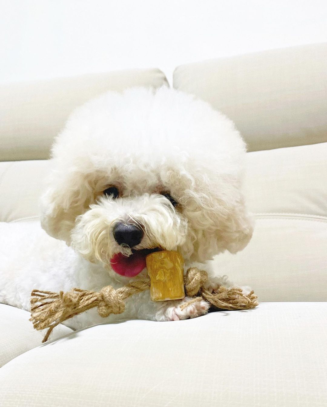 為純天然製成。咖啡樹木的高纖維密度使得玩具不易產生碎片,適合狗狗重複啃咬!